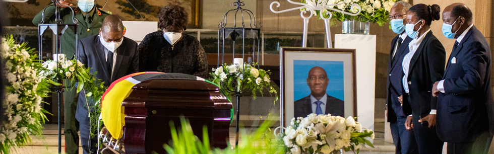Participaram no velório, o Presidente Filipe Jacinto Nyusi, os antigos Presidentes da República, Joaquim Alberto Chissano e Armando Emílio Guebuza, e numerosos familiares, amigos e colegas. O finado deixa viúva, Judite Baloi, e dois filhos, Edgar e Vanda. (UCI) Na imagem, o Presidente Nyusi presta a última homenagem a Oldemiro Baloi.