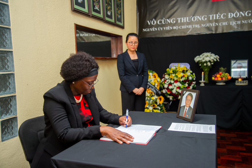 A Ministra dos Negócios Estrangeiros e Cooperação, Maria Manuela dos Santos Lucas, assinou na manhã desta segunda-feira, dia 26 de Maio corrente, o livro de condolências em homenagem ao antigo Presidente do Vietname , Tran Duc Luong, na Embaixada do Vietname em Moçambique. Na ocasião, a Ministra Maria Manuela Lucas registou a seguinte mensagem:“Foi com profundo pesar que tomamos conhecimento do desaparecimento físico de Sua Excelência Tran Duc Luong, antigo Presidente da República Socialista do Vietname, ocorrido em Hanói, no dia 20 de Maio de 2025. Esta partida do proeminente filho do Vietname, constitui uma perda irreparável não apenas para o seu povo, mas será também sentida por todos os povos amantes da paz, pois, sob a liderança de Sua Excelência Tran Duc Luong, o país logrou progressos económicos, sociais e do bem-estar do Povo vietnamita e foi igualmente o promotor da paz e estabilidade política entre os povos. Não temos dúvida de que o seu legado será fonte de inspiração para as gerações vindouras. Neste momento de dor e luto, em nome do Povo e do Governo da República de Moçambique e em meu próprio nome, apresento à Vossa Excelência, Senhor Presidente, ao povo, ao Governo da República Socialista do Vietname e, através de Vossa Excelência, à família enlutada, as nossas mais sentidas condolências e solidariedade”. (DCI)