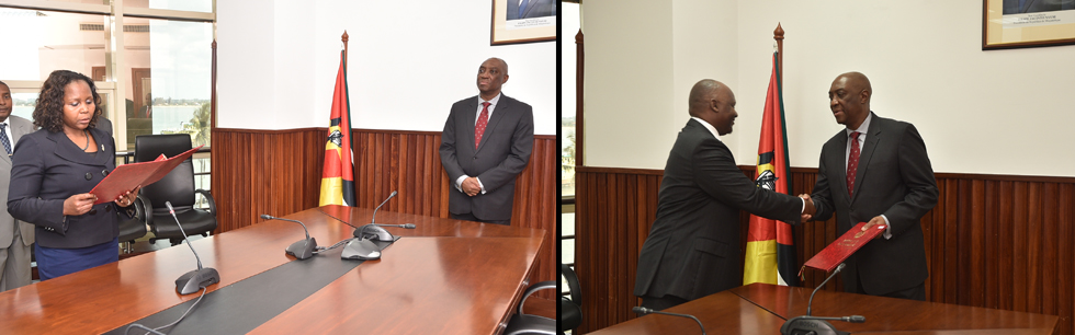 O Ministro dos Negócios Estrangeiros e Cooperação, Oldemiro Baloi, conferiu posse a Chefe de Gabinete do Ministro, Lúcia Armando Cherinda e ao Assessor para área Político-Diplomática, Elias Jaime Zimba, na quarta-feira, dia 23 de Agosto de 2017.