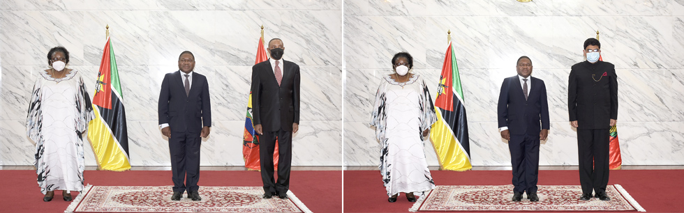O Presidente da República, Filipe Jacinto Nyusi, enalteceu a grandeza e a robustez dos laços de cooperação com a África do Sul e a Índia, após nos encontros que manteve com os diplomatas dos dois países, após receber as Cartas Credenciais dos Alto-Comissários sul-africano e indiano, General Siphiwe Nyanda e Ankan Banerjee, respectivamente.